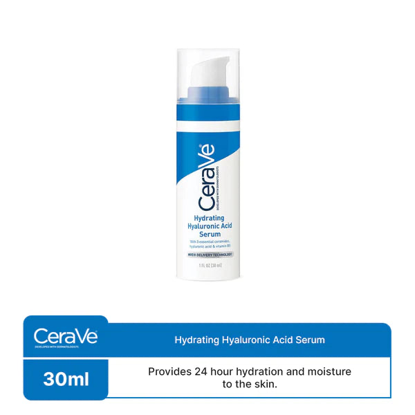 Developed with dermatologists, the CeraVe Hydrating Hyaluronic Acid Serum is a lightweight gel-cream formula designed to deliver 24-hour hydration and help maintain the skin’s natural protective barrier. Enriched with 3 Essential Ceramides, Hyaluronic Acid, and Vitamin B5, this serum effectively locks in moisture, smooths the skin, and enhances softness without clogging pores. Ideal for normal to dry skin, it can be used alone, layered under moisturizer, or as a hydrating makeup base.