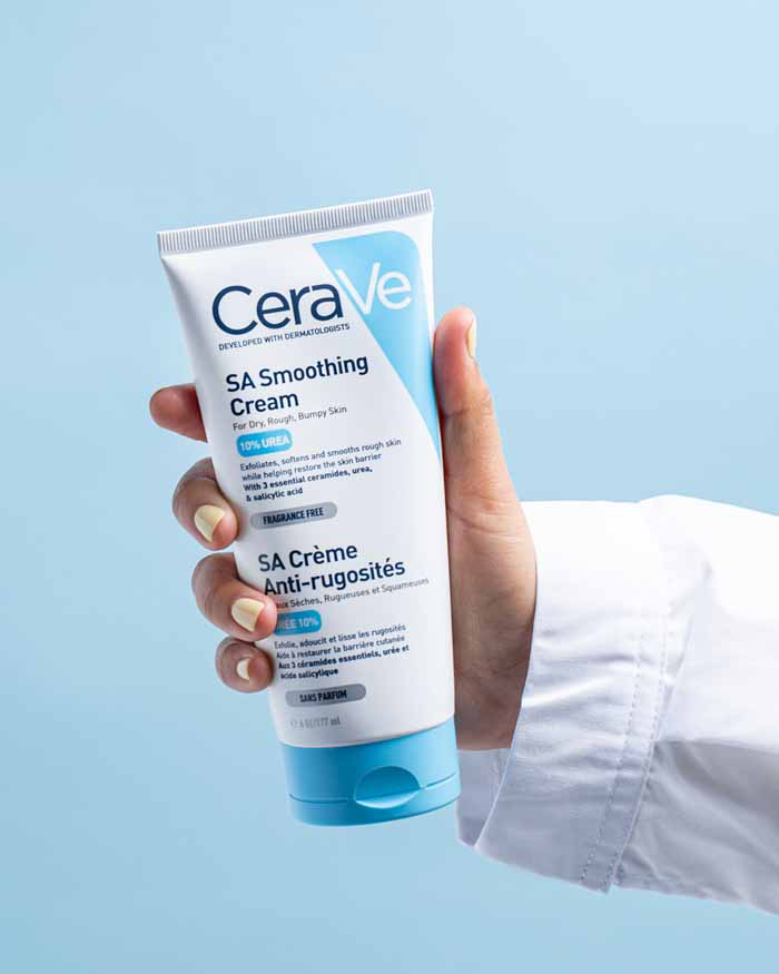 Developed with dermatologists, CeraVe SA Smoothing Cream is a rich, fragrance-free moisturizer designed to gently exfoliate and deeply hydrate the skin. Formulated with Salicylic Acid and 10% Urea, it works to smooth rough and uneven skin texture while maintaining the skin’s protective barrier. Enriched with 3 Essential Ceramides and CeraVe’s patented MVE Technology, this fast-absorbing cream provides long-lasting hydration for up to 24 hours, leaving the skin soft, smooth, and refreshed.