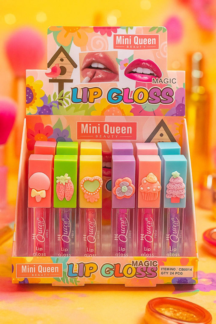 Mini Queen Magic Lip Gloss 6pcs is a stunning lip gloss collection that adds a touch of shine and hydration to your lips. Each gloss is formulated with a lightweight, non-sticky texture that glides on smoothly for a glossy, luscious finish. The set features six beautiful shades that change color slightly based on your body temperature, giving a magical and personalized look. Perfect for everyday wear or special occasions, these glosses keep your lips soft, moisturized, and vibrant all day long.